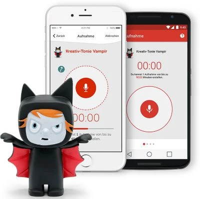 Wie für alle Kreativ-Tonies, muss du dir auch für den Vampir ein kostenloses Toniecloud Kundenkonto einrichten und schon kannst du deine Geschichten, Lieder, Nachrichten, vorhandene Hörbücher und die wildesten Hörabenteuer mit ihm verknüpfen.